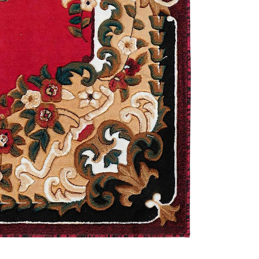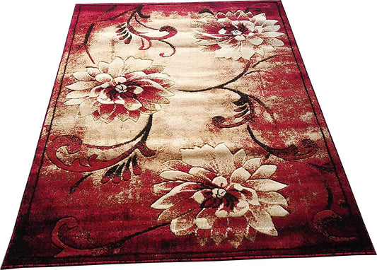 Luxury & Premium Soft Concord Carved Embossed Carpet [Red Floral Pattern]